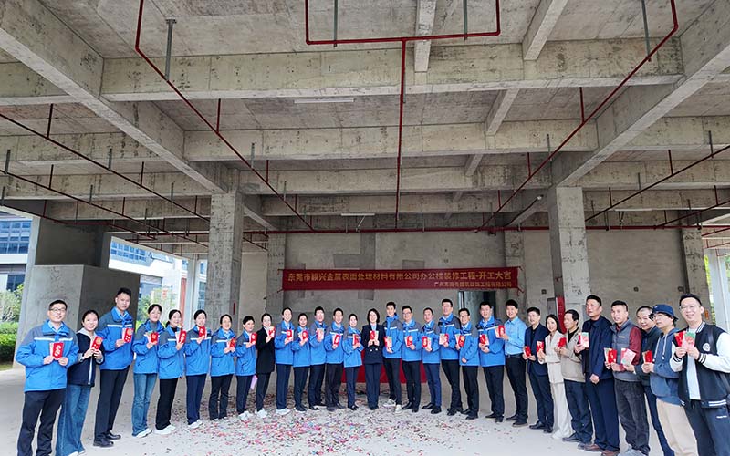 5000m²企业总部办公大楼|东莞市颖兴金属表面处理材料有限公司装修项目开工大吉