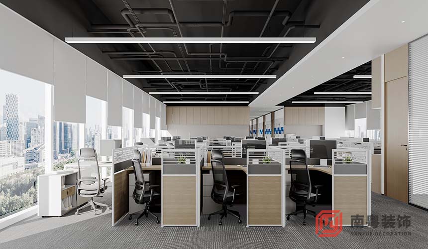 项目以"自然与科技的对话"为设计主线,巧妙融合现代工业美学与自然元素。空间采用冷灰色地毯与温润木饰面形成材质碰撞,刚柔并济的质感对比既体现科技企业的专业严谨,又传递人文温度。智能灯光系统根据不同时段调节色温,配合绿植墙的生态景观,实现"空间情绪"的动态管理。开放式工位区采用模块化家具组合,搭配合围式办公桌,满足多样化协作需求;大型会议室运用声学优化设计,确保私密性与专注度。